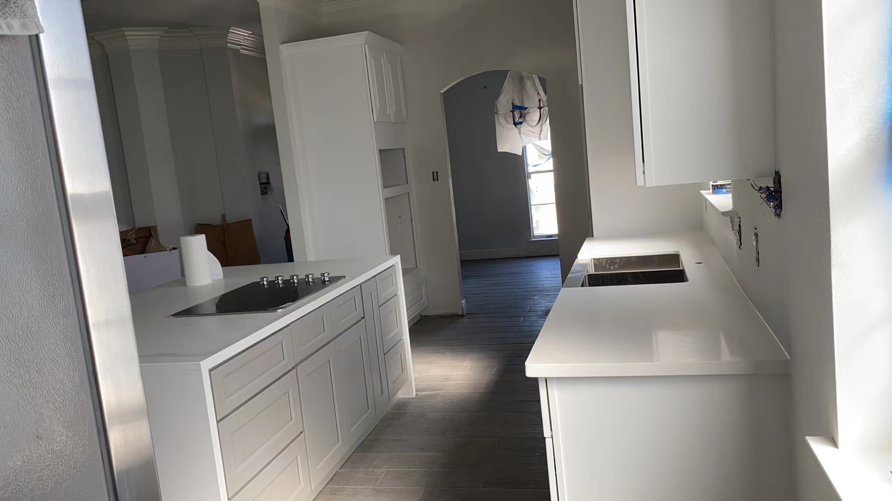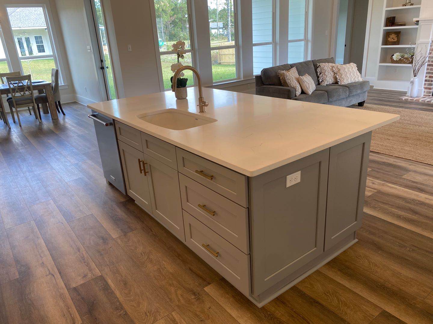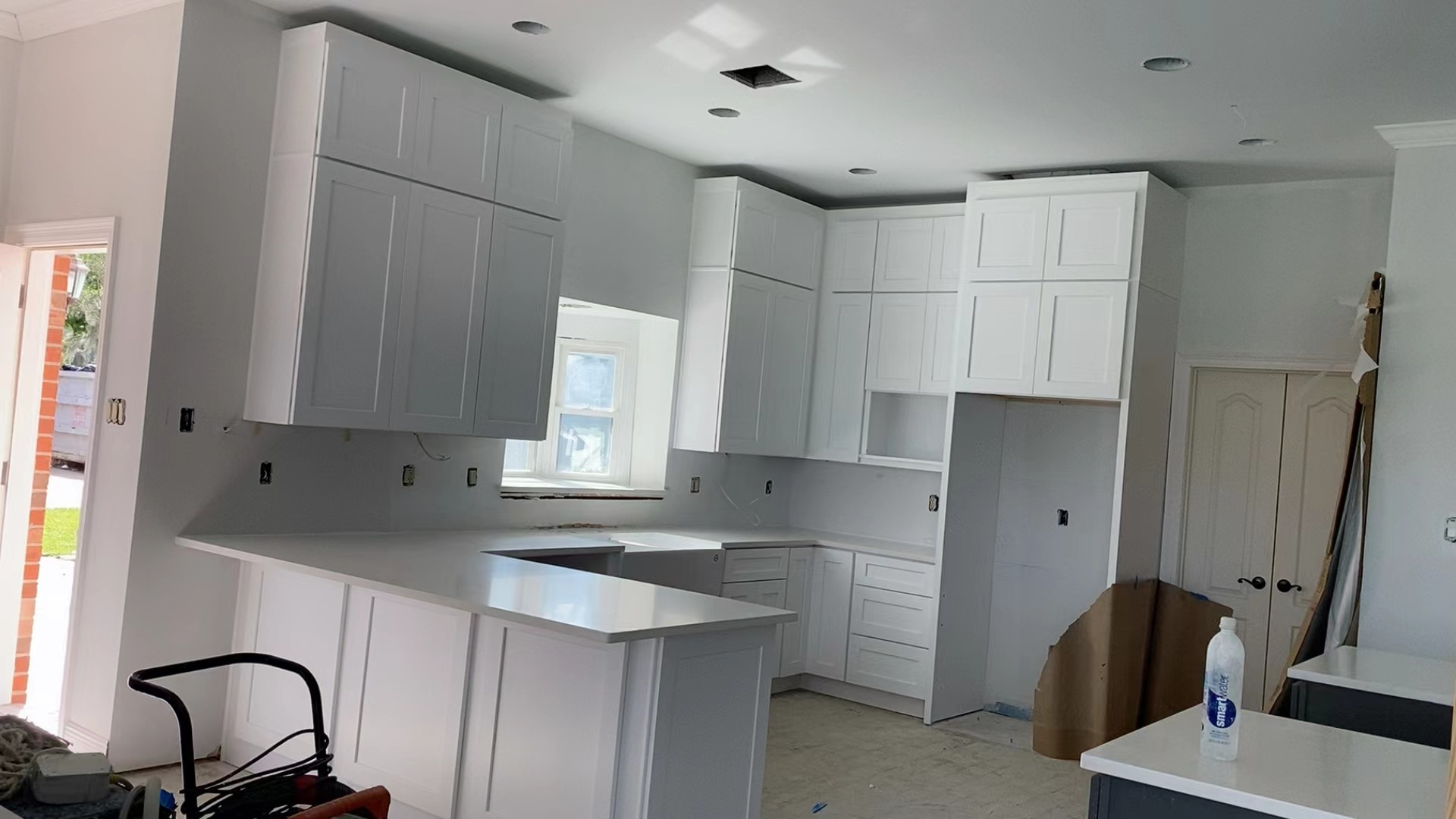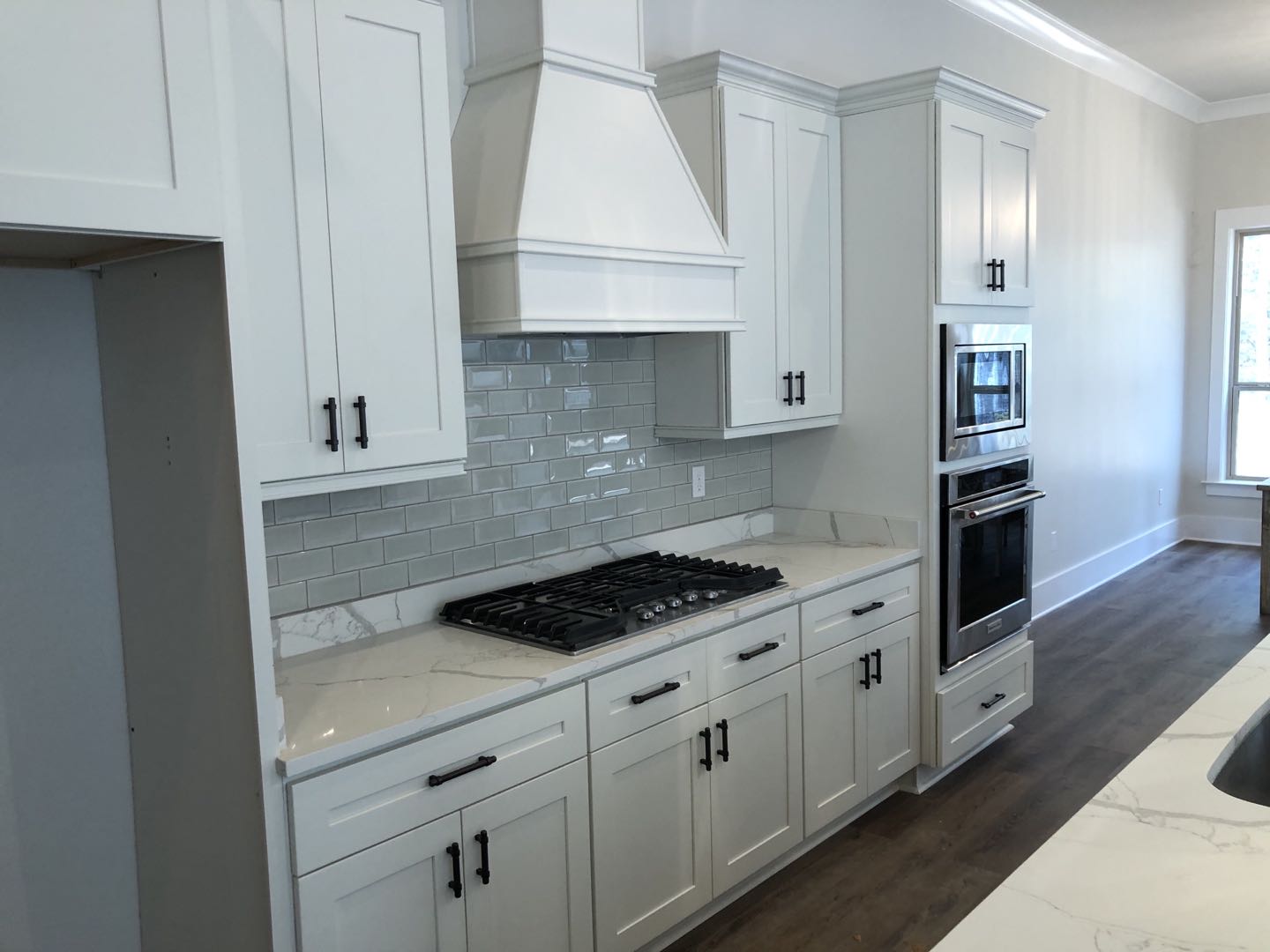–WHITE SHAKER WITH GREY SHAKER ISLAND AND QUARTZ COUNTERTOP —