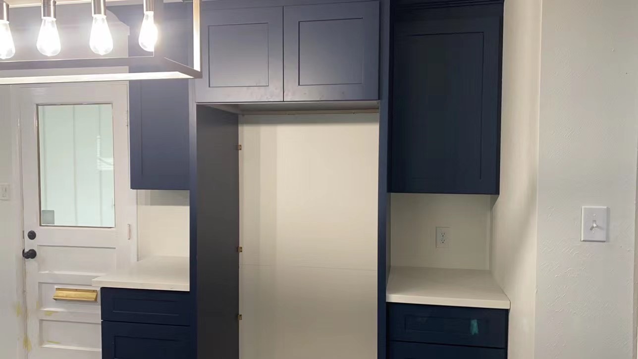 –ACRYLIC WHITE AND BLUE CABINETS–